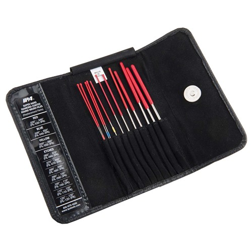 The Pro Series Diamond Coated Micro File set from RAMRODZ INC. includes 12 individual files ranging in size from .030” to .120”. Each tool features a diamond abrasive coating for precise filing and exceptional durability.