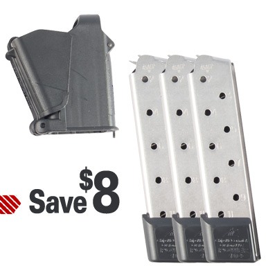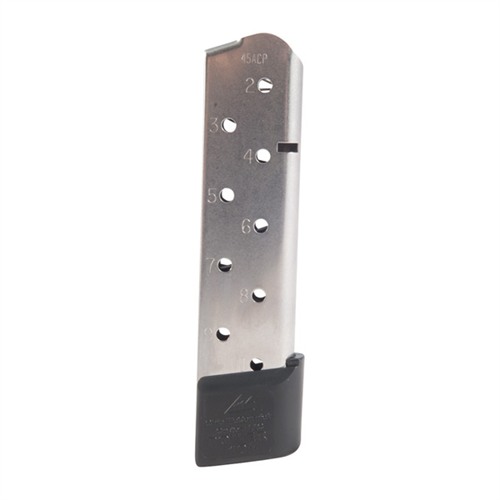 - Available in 8-round capacity with a slightly extended base pad that adds about ¼" to magazine length.