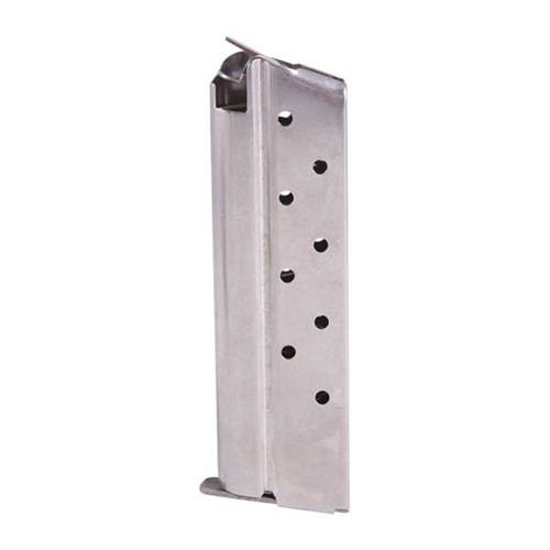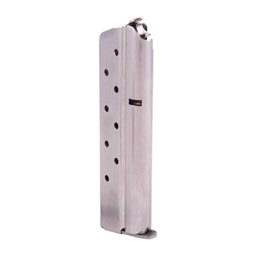 - Compatible with 1911 Government and Commander models, these magazines have a 9-round capacity and come in silver finish.