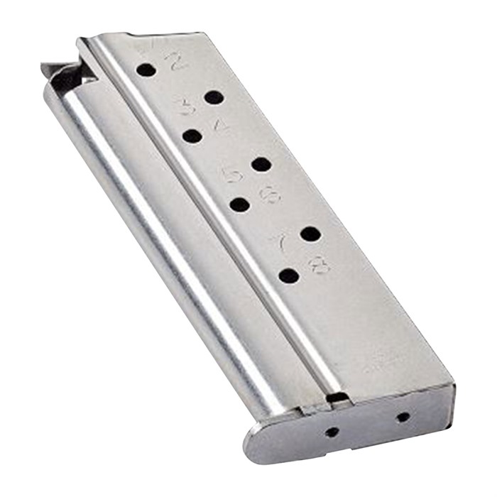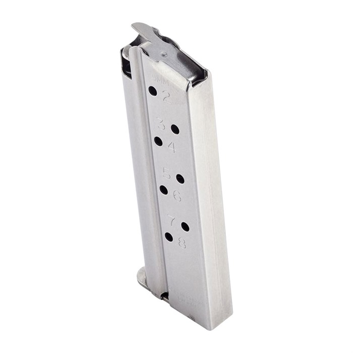 - Designed for 9mm 1911 Compact models, the magazine has an 8-round capacity and features a flush fit for easy concealment.