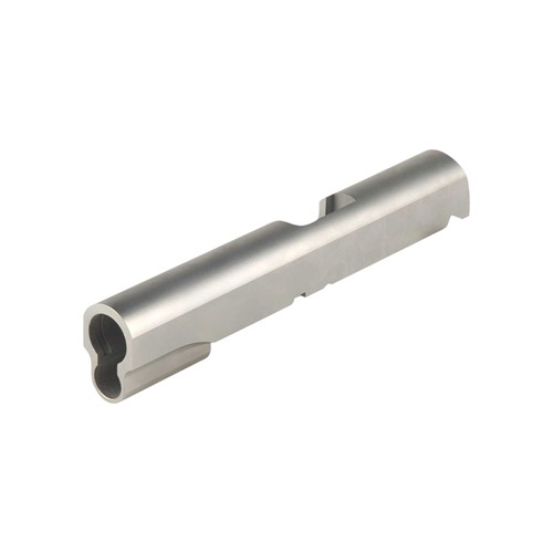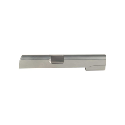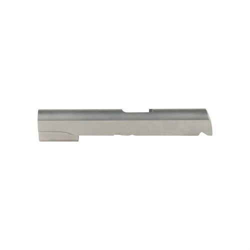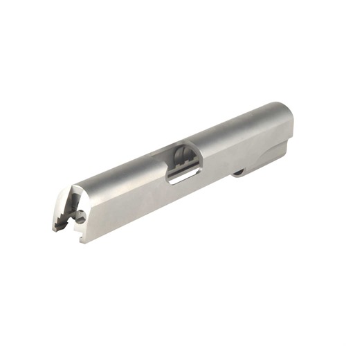 - Designed for customizability, the slide has a smooth top for custom sight dovetail cuts and options for side serration patterns.