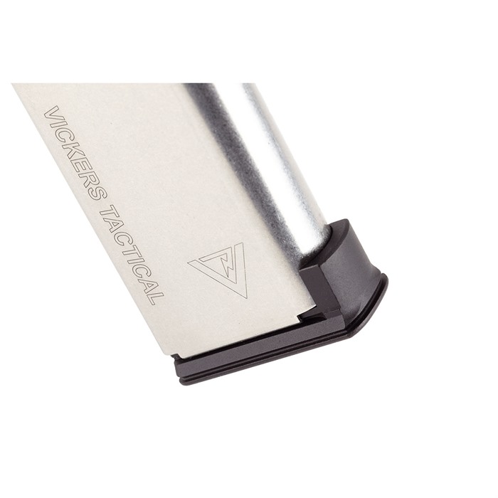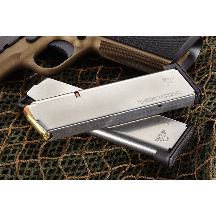 - The Wilson Combat 1911 ETM-V Vickers Duty Magazine is made of aircraft-grade certified stainless steel, enhancing reliability and resistance to corrosion.