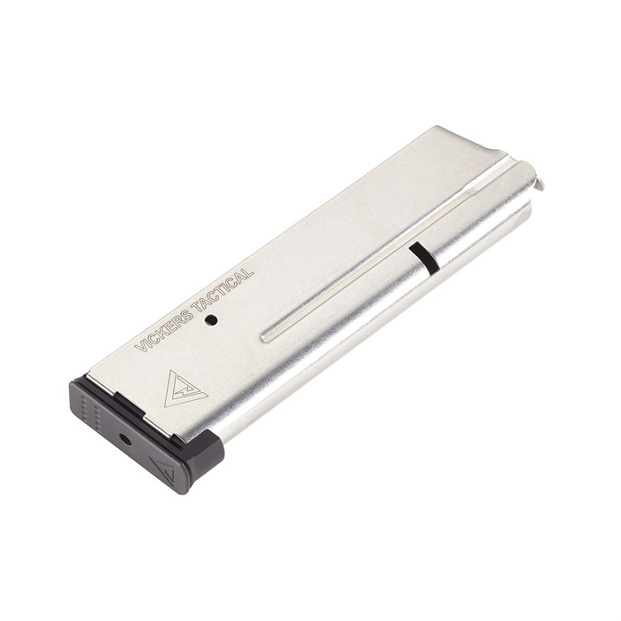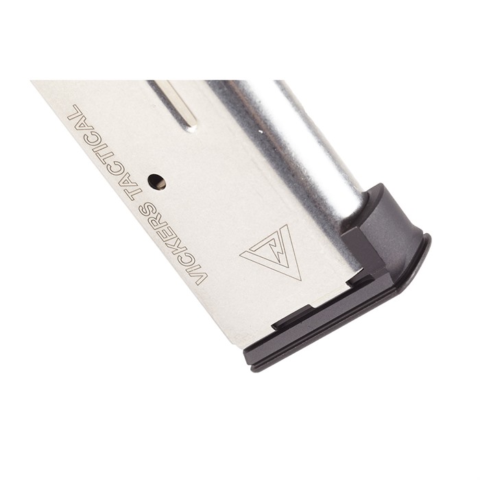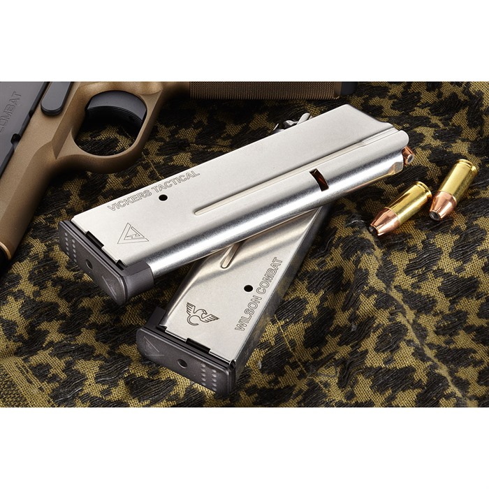 - The Wilson Combat 1911 ETM-V Vickers Duty Magazine is made of aircraft-grade certified stainless steel for increased reliability and corrosion resistance.