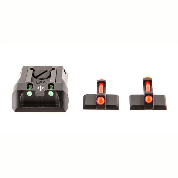 Each set comes complete with a flat front and rear sight, ready for installation. Upgrade your firearm today with the 1911 Fusion Fiber Optic Adjustable Dovetail Sight Set and experience the difference in your shooting accuracy.