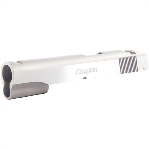 - Caspian carbon steel slides are designed for custom fitting to various frames, featuring a heat-treated forging process for strength and stability with a matte, non-glare finish.