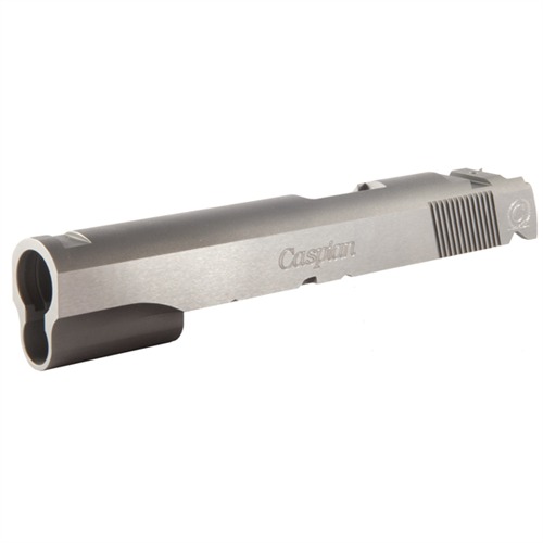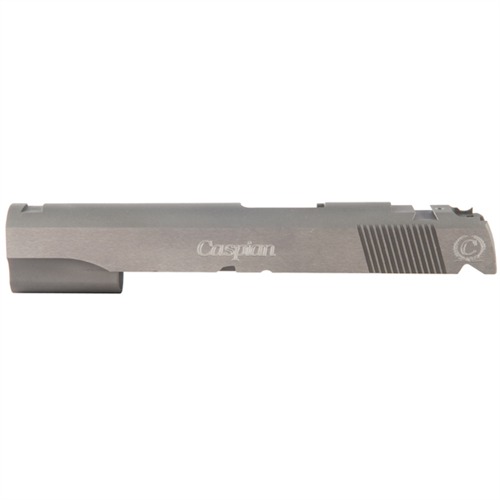 - Caspian 1911 slides are made of high-quality 4340 carbon steel or 416 stainless steel, designed for custom fitting to various frame sizes, and feature a bead-blasted, non-glare matte finish.