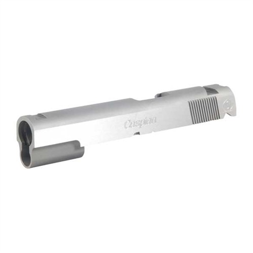- Caspian custom-quality slides with heat-treated forgings for strength and dimensional stability, featuring a non-glare, matte finish and forward-angled rear cocking serrations.