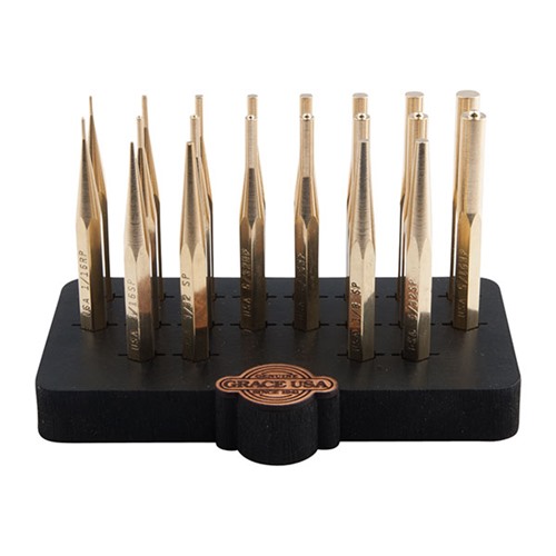 The GRACE USA 20 Piece Brass Punch Set is an essential addition to any gunsmith's toolkit. Included with our new Grace USA Bench Top Holder, this set is crafted with the utmost precision to ensure reliability and performance.