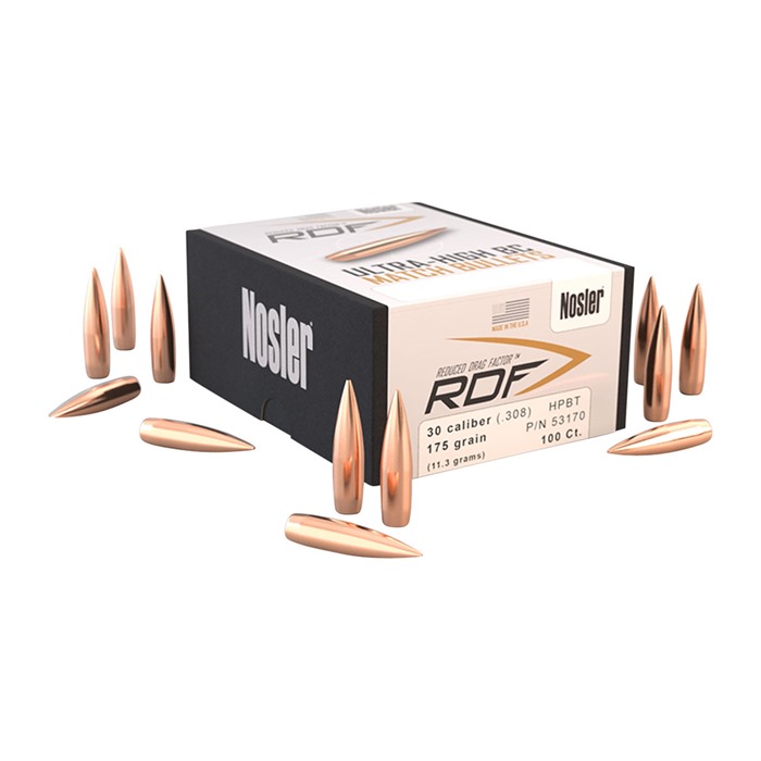 - Nosler's RDF 30 caliber 175 grain bullets are designed for maximum performance with high ballistic coefficients for flat trajectories and minimal wind drift.