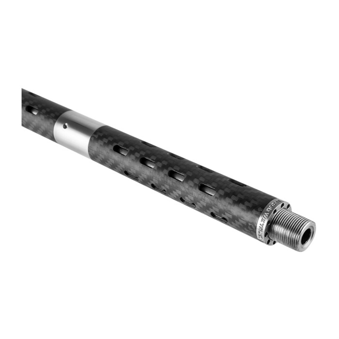 - The carbon fiber sleeve is designed to prevent heat retention and delamination, with holes that allow for quick heat venting, maintaining accuracy during prolonged firing.