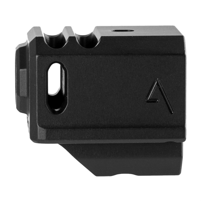 - Constructed from 7075 aluminum, it features a two-chamber design with vertical and side ports and is available in black or gold finishes.