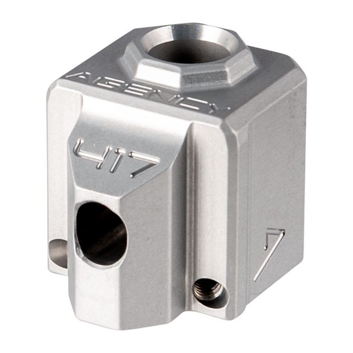 - The Agency Arms 417S Compensator is designed for Glock models 17, 19, 34, 26, 45, and 19X with a 1/2x28 thread pitch.