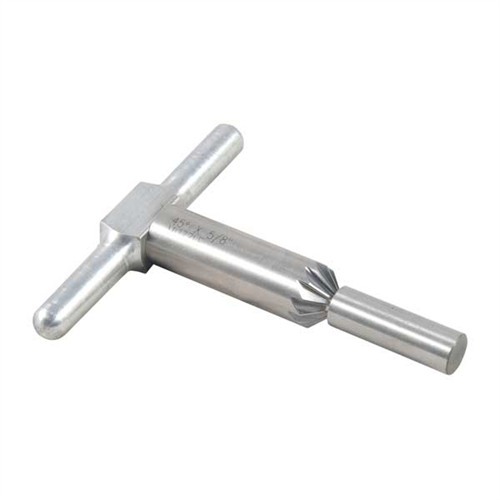 The 45° Cutter supplied in sets marked with an * features a 5/8" diameter, perfect for chamfering larger barrel and cylinder mouths on specific calibers. All other sets include a ½" diameter, 45° cutter.