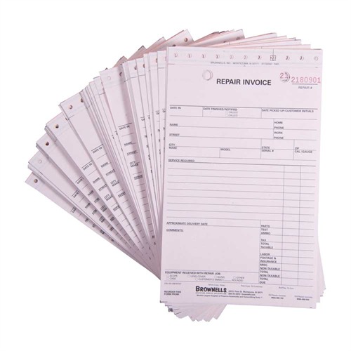 The BROWNELLS REPAIR LOG INVOICE FORMS are essential for any gunsmith or firearm enthusiast looking to maintain meticulous records of repairs and services. Each pack contains 500 3-Part Forms, designed for efficiency and ease of use.