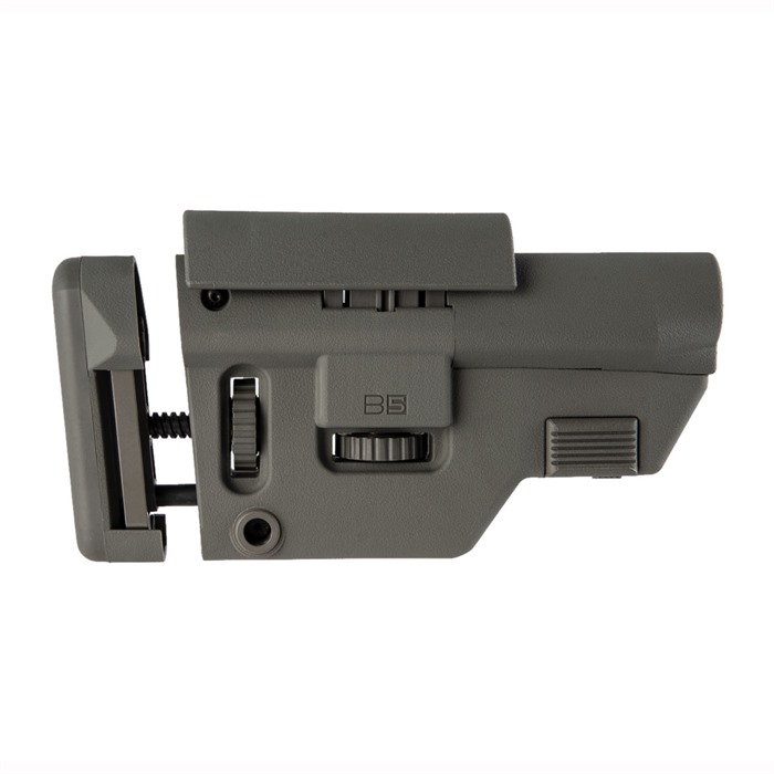 - The B5 Systems Collapsible Precision Stock offers an adjustable and compact alternative to bulky, fixed rifle stocks, ensuring both precision and portability.