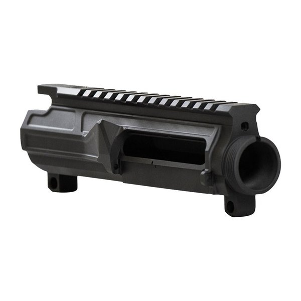 - This upper receiver has a sleek design with a trimmed brass deflector, providing a minimalist platform.