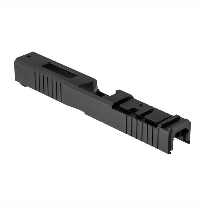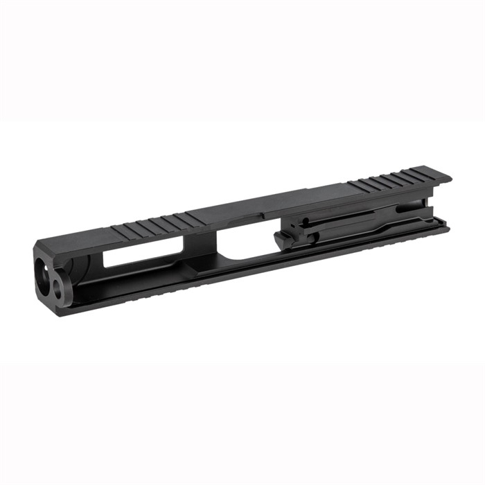 - It features a distinctive window cutout for heat dissipation and aesthetic appeal, along with factory-style front and rear cocking serrations.