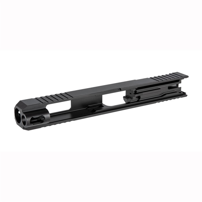 - Constructed from 17-4 stainless steel billet with a Black Nitride finish, the slide is durable, corrosion-resistant, and has a cooling window cutout for barrel heat dissipation.