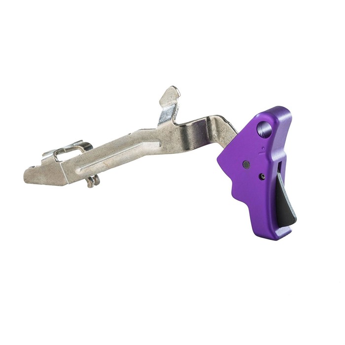 - The trigger maintains factory safety values with a center mounted pivoting safety and comes in a purple finish, suitable for various Glock models including 17, 19, 22, 23, and more.
