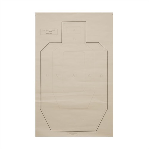 These paper targets are NRA approved for 50 yard shooting with pistols. Featuring a silhouette style suitable for USPSA/IPSC shooting, the targets include clearly marked A, B, C, and D zones for precise scoring.