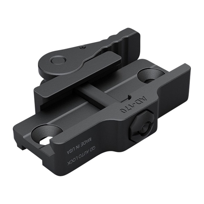 818503010187 The AD-170 base is the foundation for several different mounts. Standalone it is a Surefire 951 Type weapons light mount. Alternatively it can accept several different risers to accomodate a variety of uses. It is precision machined from 6061 T6 aluminum and finished in hard coat T3 Mil-Spec anodize. It features the Patented QD Auto Lock Lever system to accommodate both in spec and out of spec rail systems.Delivery time approx. 2-3 days.