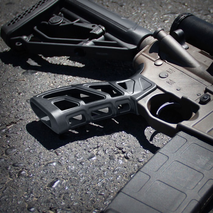 ADAPTIVE TACTICAL, LLC LTG LIGHTWEIGHT TACTICAL GRIP FOR AR15 The Lightweight Tactical Grip (LTG) is specifically engineered to cut weight, improve grip and add a level of aggressive styling – at a value price. Utilizing high grade reinforced polymer materials, the LTG offers all weather performance, durable lightweight construction and ergonomic comfort for consistently accurate firearm control. The LTG's one-piece frame design reduces overall material and significantly reduces weight compared to other grip designs. Non-conductive material maintains a comfortable surface temperature in all weather conditions. All season performance, durable lightweight construction, and ergonomic comfort for consistently accurate firearm control. SPECS One-piece construction, designed to be lightweight and durable Non-conductive; will not retain heat or cold Ergonomic shape; comfortable with aggressive industrial design Improved grip in all weather conditions Easy installation; includes mounting hardware Weight: 2.6 oz. Grip Angle: 25 degrees Dimensions: 4.75” L x 2.25” W x 1.125” H Available in Black & FDE Made in the U.S.A. Competitive OEM pricing available