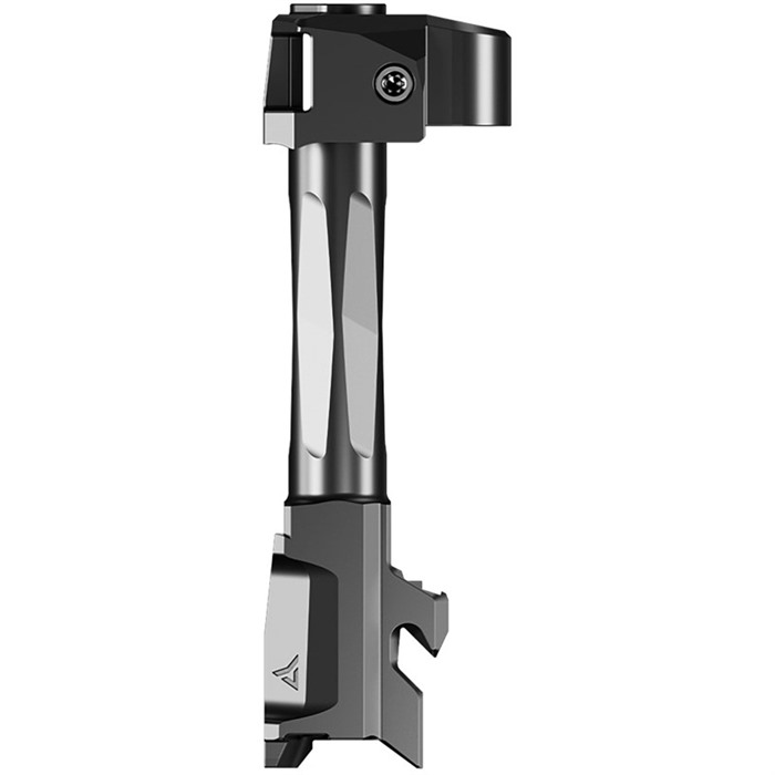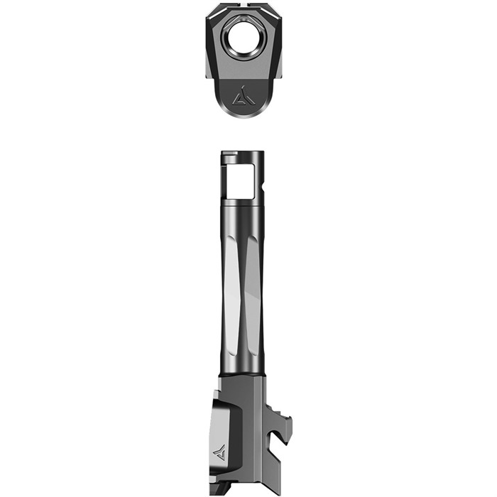 AFTERBURNER + RAMJET FOR GLOCK 43X The Radian® AFTERBURNER™ + RAMJET™ combo provide unprecedented recoil reduction and match grade accuracy in a concealed carry package. The threadless barrel design allows for effortless install/removal for cleaning, while LEGAL FOR SALE IN ALL 50 STATES*. The AFTERBURNER™ compensator is machined from hardened stainless steel and the RAMJET™ barrel from hardened 416R SS; both are enhanced with a Radianite™ coating. This combination achieves low friction, high hardness, and high corrosion resistance, making overall durability and erosion from muzzle blast a non-issue. Angled front faces on the AFTERBURNER aid in holstering. The INTRA-LOK® mounting system uses the taper lock principle; a tapered locking screw interfaces with an angled V-groove on the underside of the barrel. This perfectly times the compensator as it locks down onto the upper barrel profile on the muzzle end of the barrel. INTRA-LOK® allows the user to simply slide the compensator over the barrel, insert and tighten the locking screw, making for a simple and repeatable installation process. This system allows the user to easily remove the barrel from the slide for cleaning. DISCLAIMER: “GLOCK” is a federally registered trademark of GLOCK, Inc. and is one of many trademarks owned by GLOCK, Inc. or GLOCK Ges.m.b.H. Neither Brownells nor this site are affiliated in any manner with, or otherwise endorsed by, GLOCK, Inc. or GLOCK Ges.m.b.H. The use of “GLOCK” on this page is merely to advertise the sale of GLOCK pistols, parts, or components. For genuine GLOCK, Inc. and GLOCK Ges.m.b.H. products and parts visit www.glock.com.