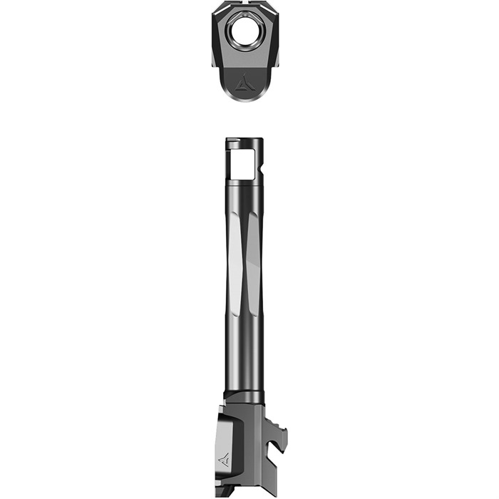 810098420709 AFTERBURNER + RAMJET FOR GLOCK 48 The Radian® AFTERBURNER™ + RAMJET™ combo provide unprecedented recoil reduction and match grade accuracy in a concealed carry package. The threadless barrel design allows for effortless install/removal for cleaning, while LEGAL FOR SALE IN ALL 50 STATES*. The AFTERBURNER™ compensator is machined from hardened stainless steel and the RAMJET™ barrel from hardened 416R SS; both are enhanced with a Radianite™ coating. This combination achieves low friction, high hardness, and high corrosion resistance, making overall durability and erosion from muzzle blast a non-issue. Angled front faces on the AFTERBURNER aid in holstering. The INTRA-LOK® mounting system uses the taper lock principle; a tapered locking screw interfaces with an angled V-groove on the underside of the barrel. This perfectly times the compensator as it locks down onto the upper barrel profile on the muzzle end of the barrel. INTRA-LOK® allows the user to simply slide the compensator over the barrel, insert and tighten the locking screw, making for a simple and repeatable installation process. This system allows the user to easily remove the barrel from the slide for cleaning. DISCLAIMER: “GLOCK” is a federally registered trademark of GLOCK, Inc. and is one of many trademarks owned by GLOCK, Inc. or GLOCK Ges.m.b.H. Neither Brownells nor this site are affiliated in any manner with, or otherwise endorsed by, GLOCK, Inc. or GLOCK Ges.m.b.H. The use of “GLOCK” on this page is merely to advertise the sale of GLOCK pistols, parts, or components. For genuine GLOCK, Inc. and GLOCK Ges.m.b.H. products and parts visit www.glock.com.
