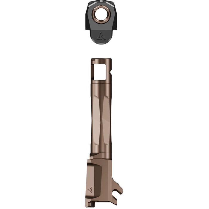 The AFTERBURNER™ compensator is machined from hardened stainless steel, and the RAMJET™ barrel is crafted from hardened 416R SS; both are enhanced with a Radianite Black coating. This combination achieves low friction, high hardness, and high corrosion resistance, ensuring overall durability and preventing erosion from muzzle blast.