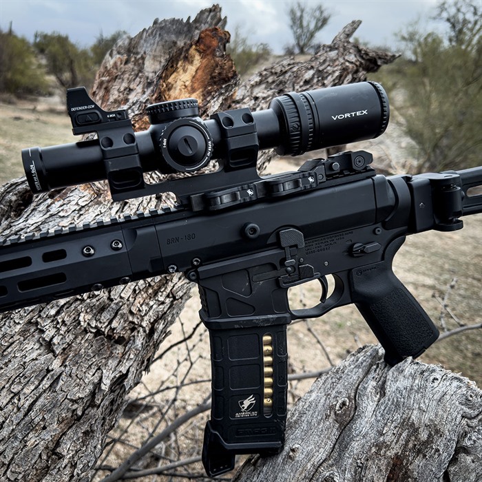 - Features such as the dimpled take down and pivot pins, installed mil-spec magazine release assembly, and the potential need to remove the BRN-180 Upper Ejection Port Door for better access to the bolt catch/release lever are notable.