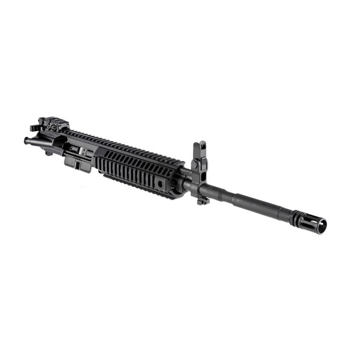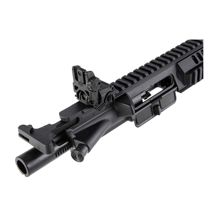 - It includes a built-in flip-up front sight and is available in 16” or 10.3” barrel lengths, with options for including a charging handle, bolt carrier group, and back up sights.