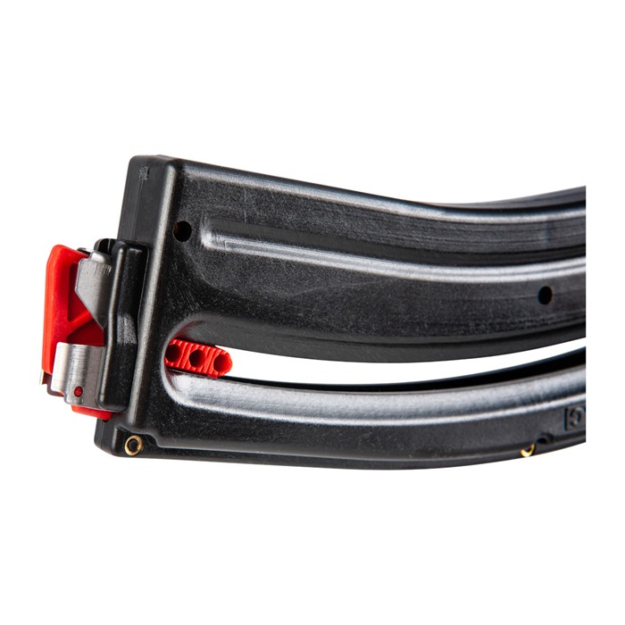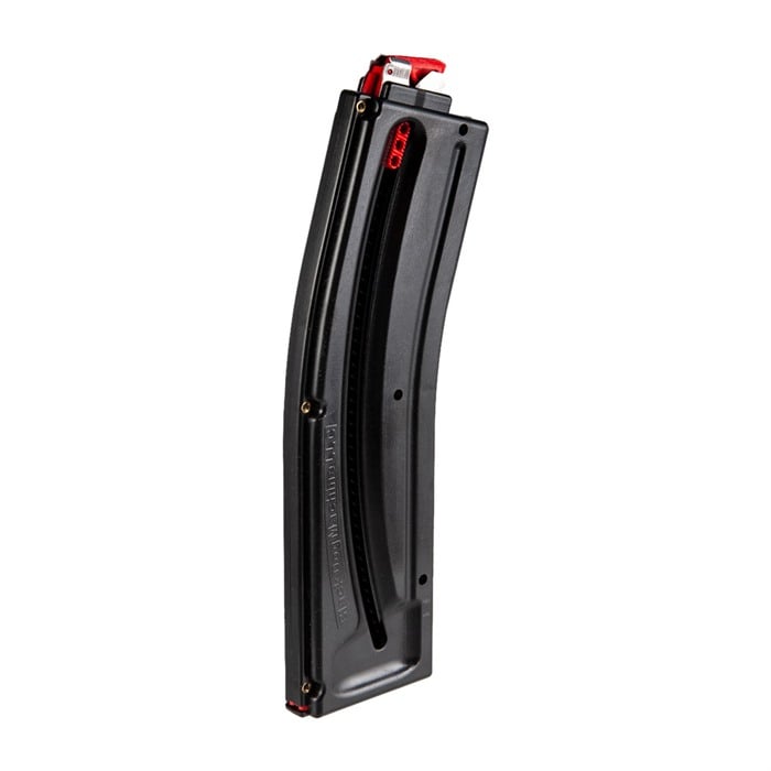 - The magazine features a thumb pull down tab for easier loading, but misuse of this feature voids the warranty.