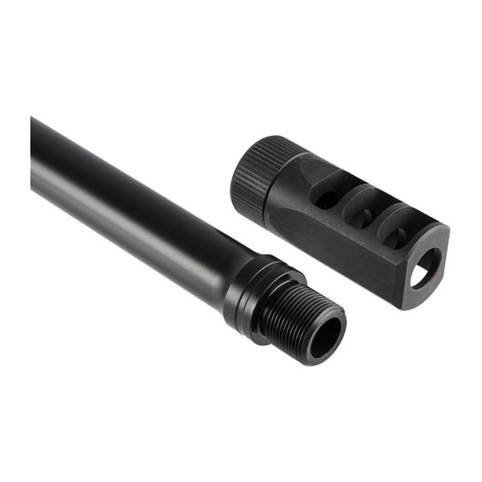 2. This barrel is equipped with a nitride coating for corrosion resistance, a threaded muzzle for suppressor attachment, and an 11-degree target crown for accuracy.