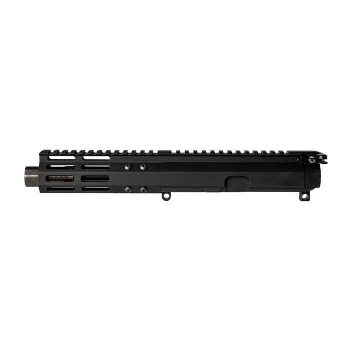 - The Foxtrot Mike Products 9mm Upper Receiver is fully assembled, designed to use Glock magazines, and features a full-length Picatinny rail and M-LOK handguard.