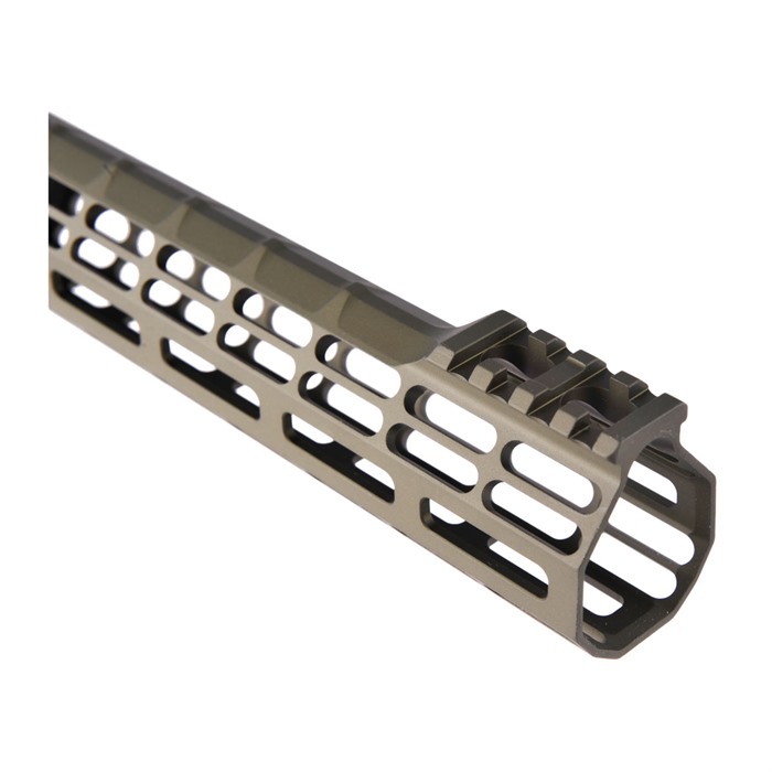 - The handguard has a slim profile with a 1.3” internal diameter and 1.5” outer diameter, and includes front and rear picatinny rails, with reduced weight by eliminating the center top rail.