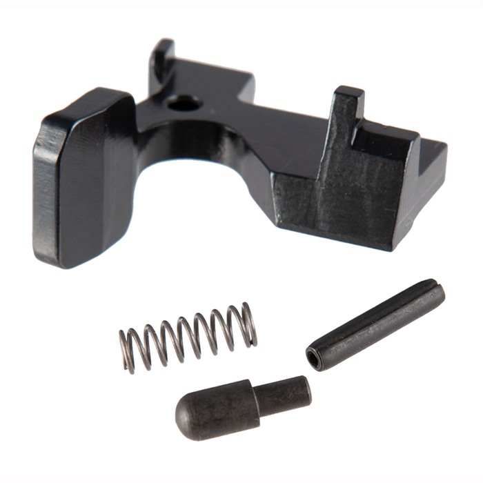 - The bolt catch is machined from billet 8620 alloy steel, heat treated with a DLC coating, and includes a bolt catch roll pin, plunger, and spring since June 15, 2018; it is designed and made in the USA.