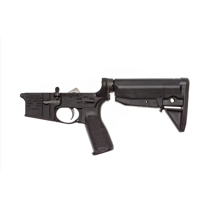- The AR-15 complete lower receiver features a BCMGUNFIGHTER™ stock and is made from 7075 T6 machined aluminum forgings with a hardcoat anodized finish.