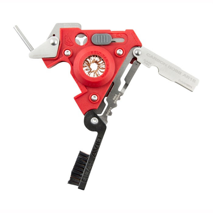 813119012150 The Real Avid AR15 Carbon Boss ensures that AR owners can keep their guns in peak condition, allowing them to go after carbon buildup in ways never before possible. The Real Avid AR15 Carbon Boss includes 12 different surfaces that are precisely designed to clean carbon off different parts of an AR bolt-carrier group. Cleans inside and outside of bolt tail Designed for use with both large and small diameter firing pins Features scrapers for firing pin neck, bolt face, bolt lug, bolt carrier and bolt cam pin Includes bronze cleaning brush The Real Avid AR15 Carbon Boss also features a pin punch and cotter-in puller and comes with a nylon storage pouch.Backorderable, delivery time approx. 4-12 weeks from the USA warehouse.