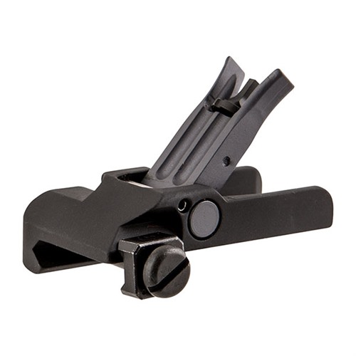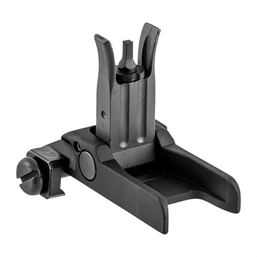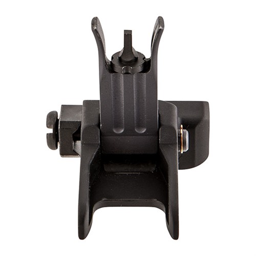 - Stowed Protection: In the folded position, the sight base envelops the front sight leaf on both sides, providing protection from damage.