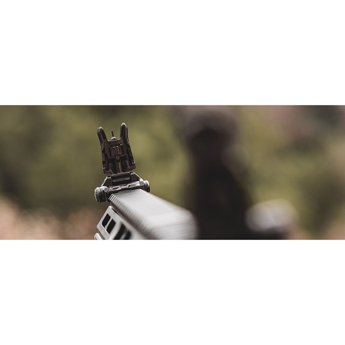 With positive detents ensuring that the MBUS PRO front and rear are at standard AR sight height when deployed, they stow away so low that you’ll hardly notice them until they’re needed. The narrow width front is compatible with most IR aiming laser and light installations, making it an ideal choice for the professional user.