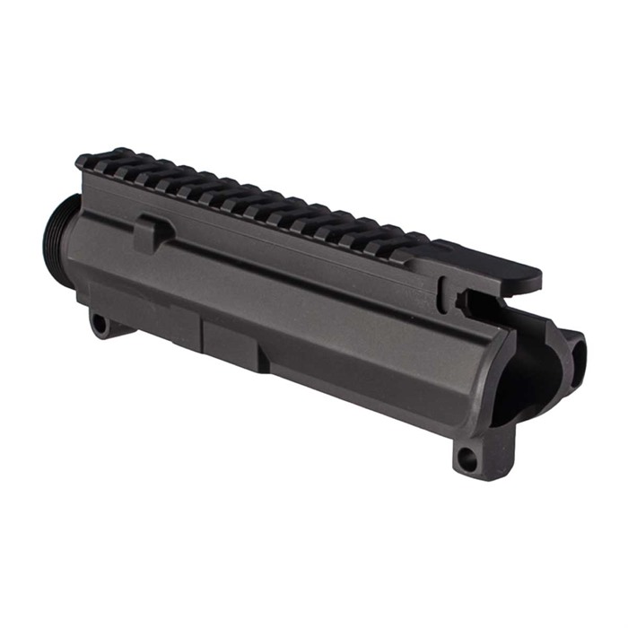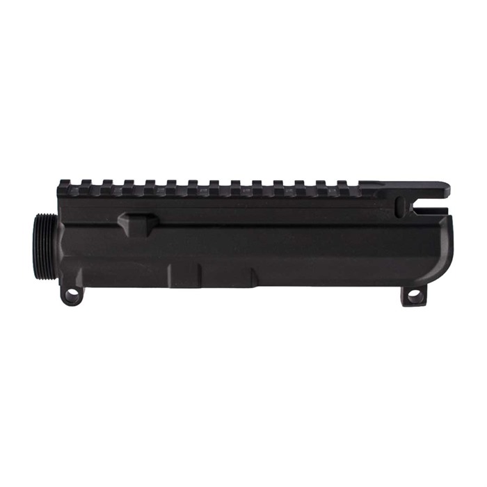 - The upper receiver includes laser-engraved T marks on the Picatinny rail but does not come with a forward assist or ejection port cover.