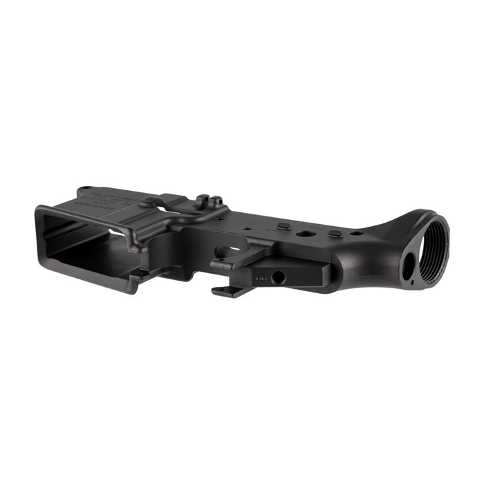 - This stripped and forged lower receiver is finished in black anodized coating and is designed for 5.56 mm NATO cartridges.