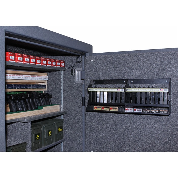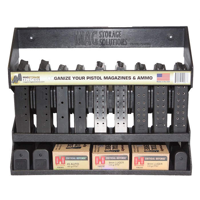 Securely store and organize your pistol magazines and ammo with adjustable dividers featuring 60 adjustment slots. This holder will accommodate loaded or unloaded mags, whether they are polymer or steel, single or double-stack.