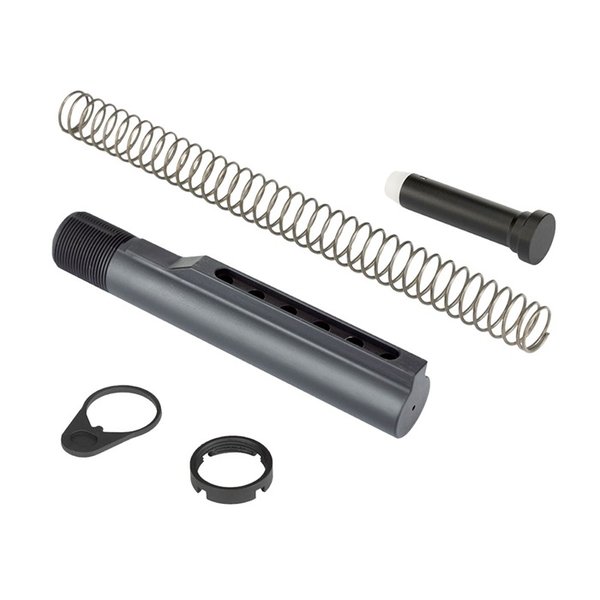 - The AR-15 Military-Spec Buffer Tube Assembly Package is constructed of Military Type III Anodized, 6061 T6 Aluminum and includes a steel military grade E-Coated castle nut and locking ring.