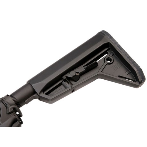 - Constructed from polymer in black, it has multiple sling mounts and is compatible with larger 1.17" O.D. commercial carbine buffer tubes.