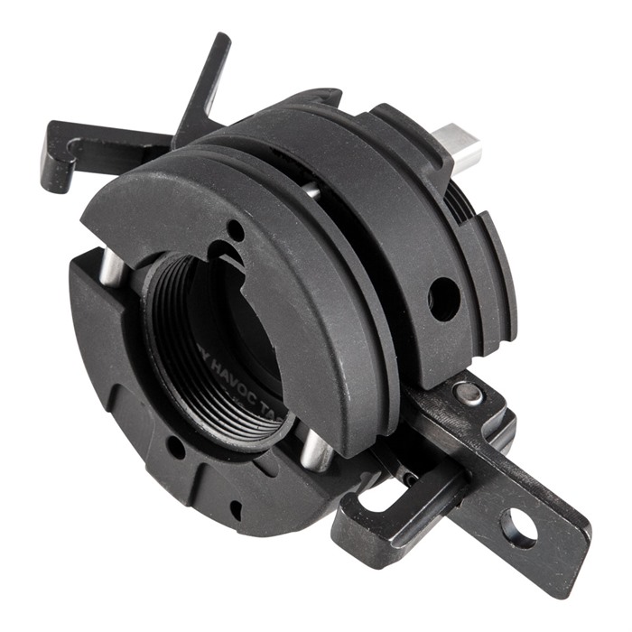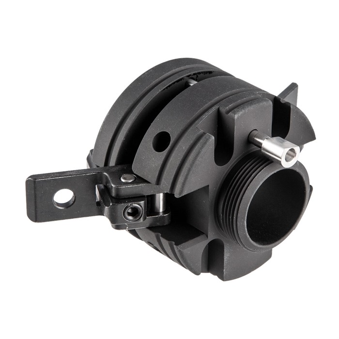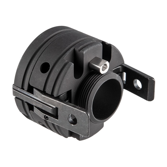 - It is compatible with barrels up to 0.985" in diameter and handguards up to 2.0" wide, adding 1.5" to the handguard length, and can be adapted for different barrel lengths or calibers with an additional Barrel Lock Plate.