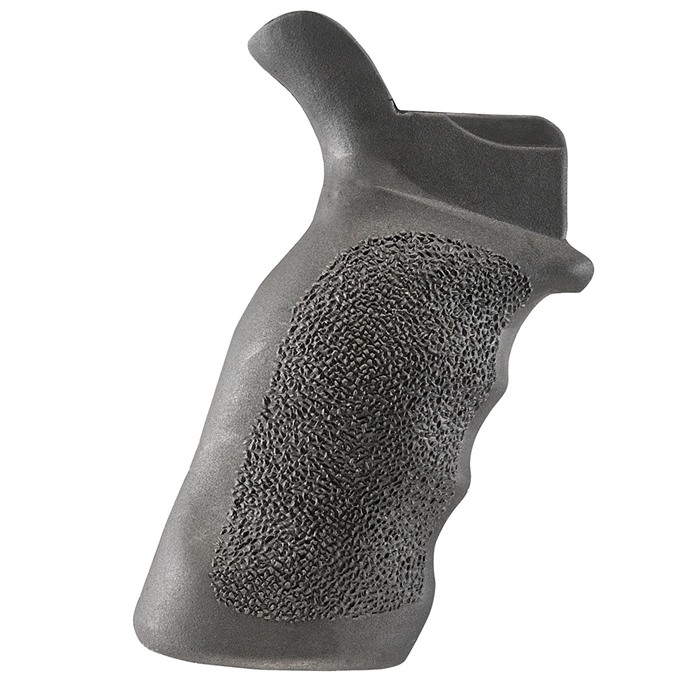 - The polymer grip is resistant to oils and solvents, ambidextrous, and comes with mounting hardware, but does not accommodate A2 style accessories in its inner cavity.
