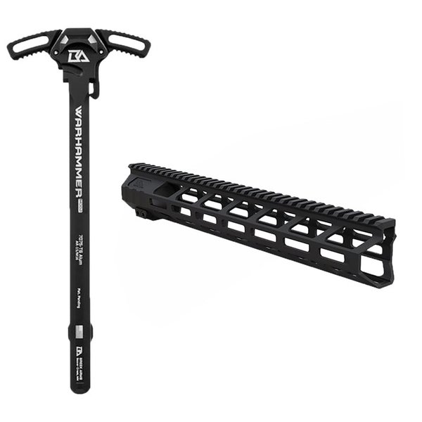 - The Breek Arms WARHAMMER MOD2 ambi charging handle offers improved usability for AR-15 rifles, featuring ambidextrous textured grooves for easy operation with gloves.