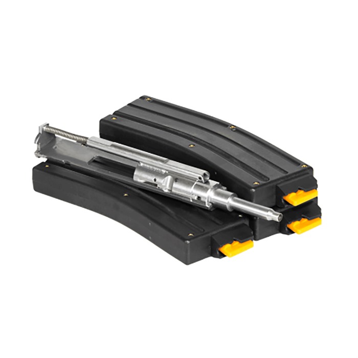 - The kit includes three 10-round magazines and is optimized for Federal 36 grain plated round-nose .22 LR ammunition.