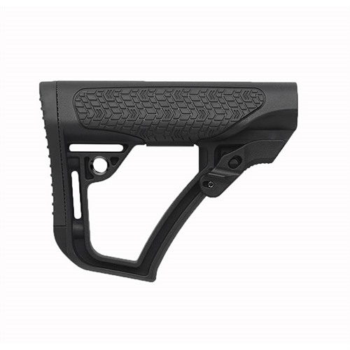 The Daniel Defense adjustable buttstock is crafted from a proprietary blend of glass-infused polymers, featuring soft touch rubber overmolding at strategic points for enhanced comfort. This precision-formed buttstock is designed for mil-spec receiver extensions, minimizing forward and lateral play commonly found in other models. As a result, there’s no need for a tensioning device or friction lock, providing a durable option that ensures a comfortable and repeatable cheek weld along with unprecedented control of your firearm.